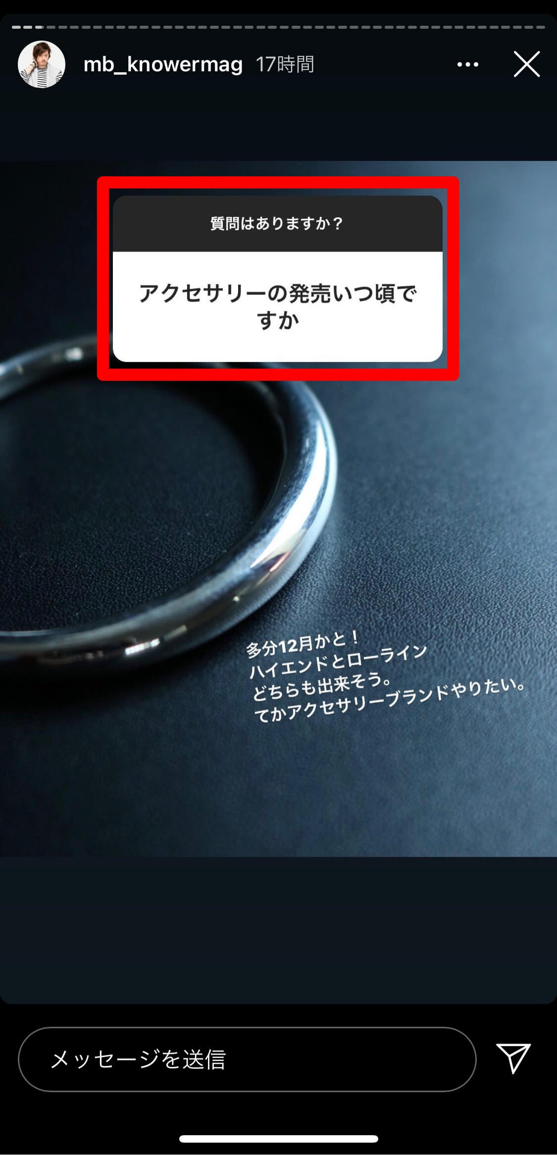 閲覧しているストーリー画面にある「テキスト入力」と表示された質問スタンプをタップします。